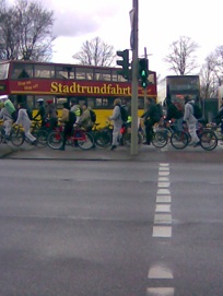 Nehmen wir das Beispiel Sprung über die Elbe. Interessant natürlich ist, wer hier wohin springt. Die Wilhelmsburger selbst – „Wir sind schon da!“ (Motto der Karnevals-Demo 18.02.2007) - sind gefragt: Was stellt ihr euch vor unter »mehr Lebensqualität«? Wie sollten eure Quartiere in Zukunft aussehen? Was ist euch wert, es zu bewahren? - an einem Ort, der nicht allein bestimmt wird durch ein Planungskonzept, sondern der gelebt wird – durch Beteiligung.
